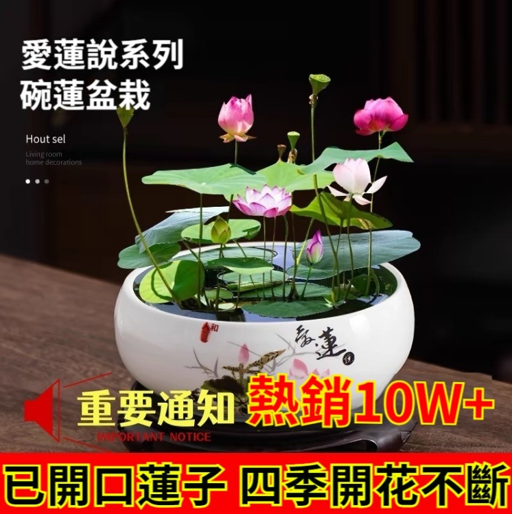 5分鐘前『招財轉運』水培碗蓮 - ★★★店主推薦【50粒+碗蓮專用營養液2+養殖盆】【綠葉+莊根+促芽+催花】,開爆了!僅需NT$800
